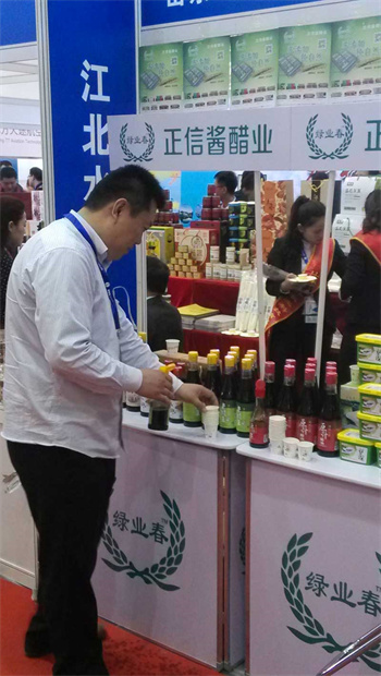 會展期間,正信醬醋業銷售人員向大家介紹了“綠業春”醬油、食醋的生產工藝,并邀請大家品嘗現場調配的醋飲,不少參觀客戶對我公司“綠業春”調味品產生了濃厚的興趣。