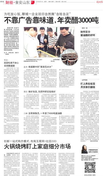 齊魯晚報“食安山東”:不靠廣告靠味道,年賣醋3000噸 作者:admin 來源: 點擊:次 字號:大中小 (查看高清大圖) 上一篇:聊城市食品安全暨正信醬醋業產品推介新聞發布會成功舉辦 下一篇:正信醬醋業參加 第四屆國際醋酸菌大會暨世界名醋博覽會 分享到:QQ空間新浪微博騰訊微博人人網分享到微信朋友圈! ? ?