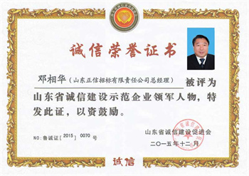 喜訊: 山東正信招標有限責任公司榮獲山東省誠信建設促進會頒發的山東省第三批誠信建設示范試點企業,其總經理鄧相華同志榮獲山東省誠信建設示范企業領軍人物稱號。今后,我公司將深入貫徹落實黨的十八大和十八屆五中全會以及山東省委、省政府關于加強社會誠信體系建設的決策部署,進一步加強企業的誠信建設,做好招投標誠信服務工作。(李璐)