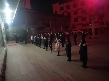 在指令官劉春嶺的一聲號令下,2月17日晚8點,青年公寓員工近50人急步在集團院內集合。
