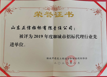 山東正信招標有限責任公司被評為聊城市招標代理行業先進單位