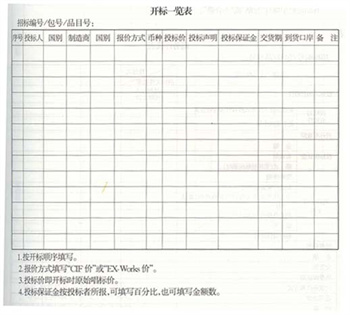 投標截止日期為 月 日 時。 月 日 時在_____ 開標,有 __家國內廠商和 ___國外廠商投標。開標一日覽表詳見表1。