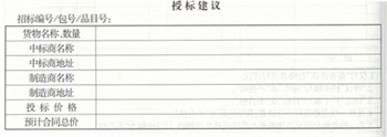 經評議, ______的投標在商務上和技術上都滿足招標文件要求,評標價格最低,且通過資格后審,初評委員會建議由 ______中標,中標金額為 ______萬美元,預計合同總價為________ 萬美元(見表6)。