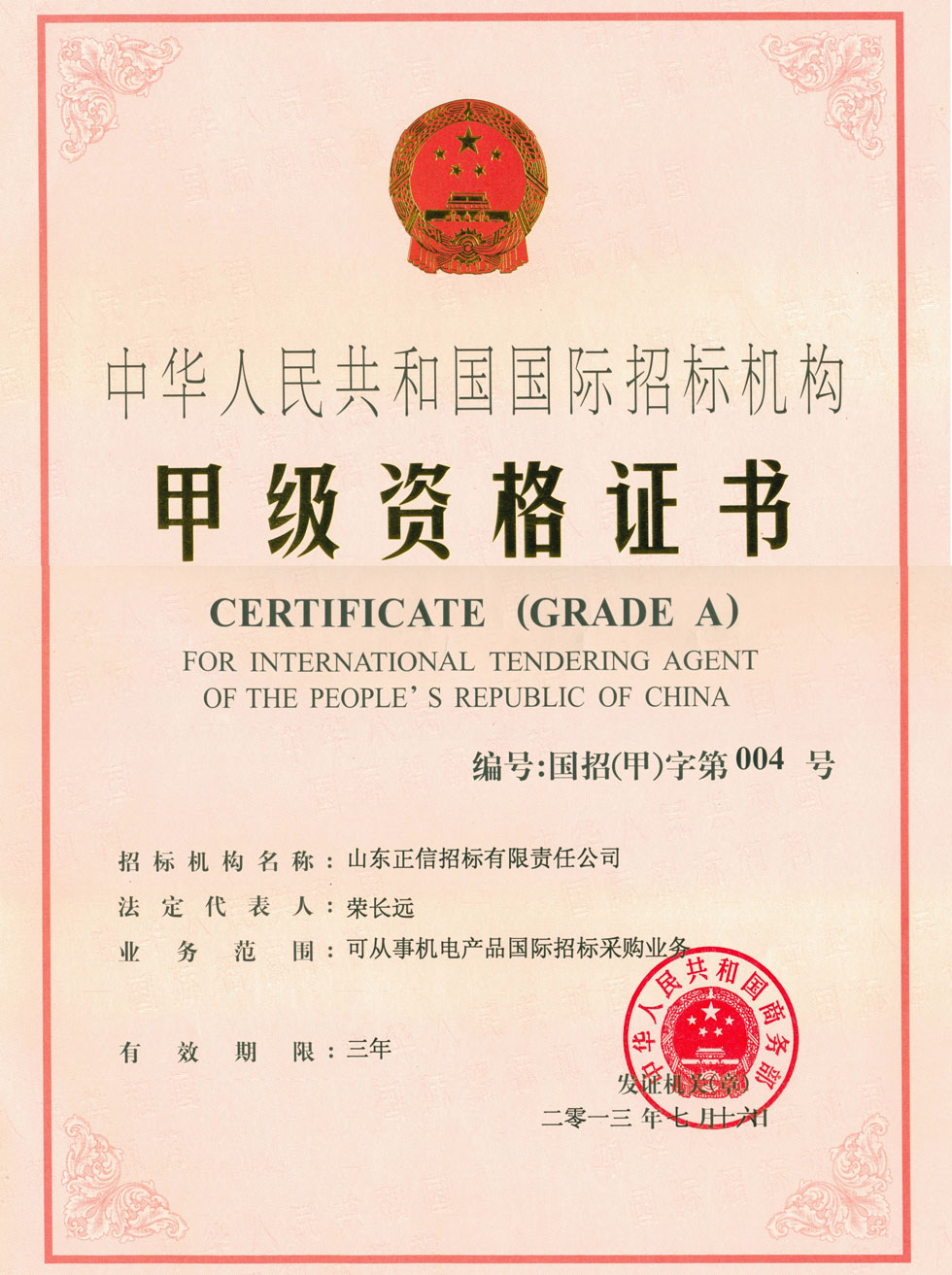 國際招標機構甲級資格證書 作者:admin 來源: 點擊:次 字號:大中小 上一篇:中央投資項目招標代理機構甲級資格證書 下一篇:政府采購代理機構甲級資格證書 分享到:QQ空間新浪微博騰訊微博人人網(wǎng)分享到微信朋友圈! ? ?